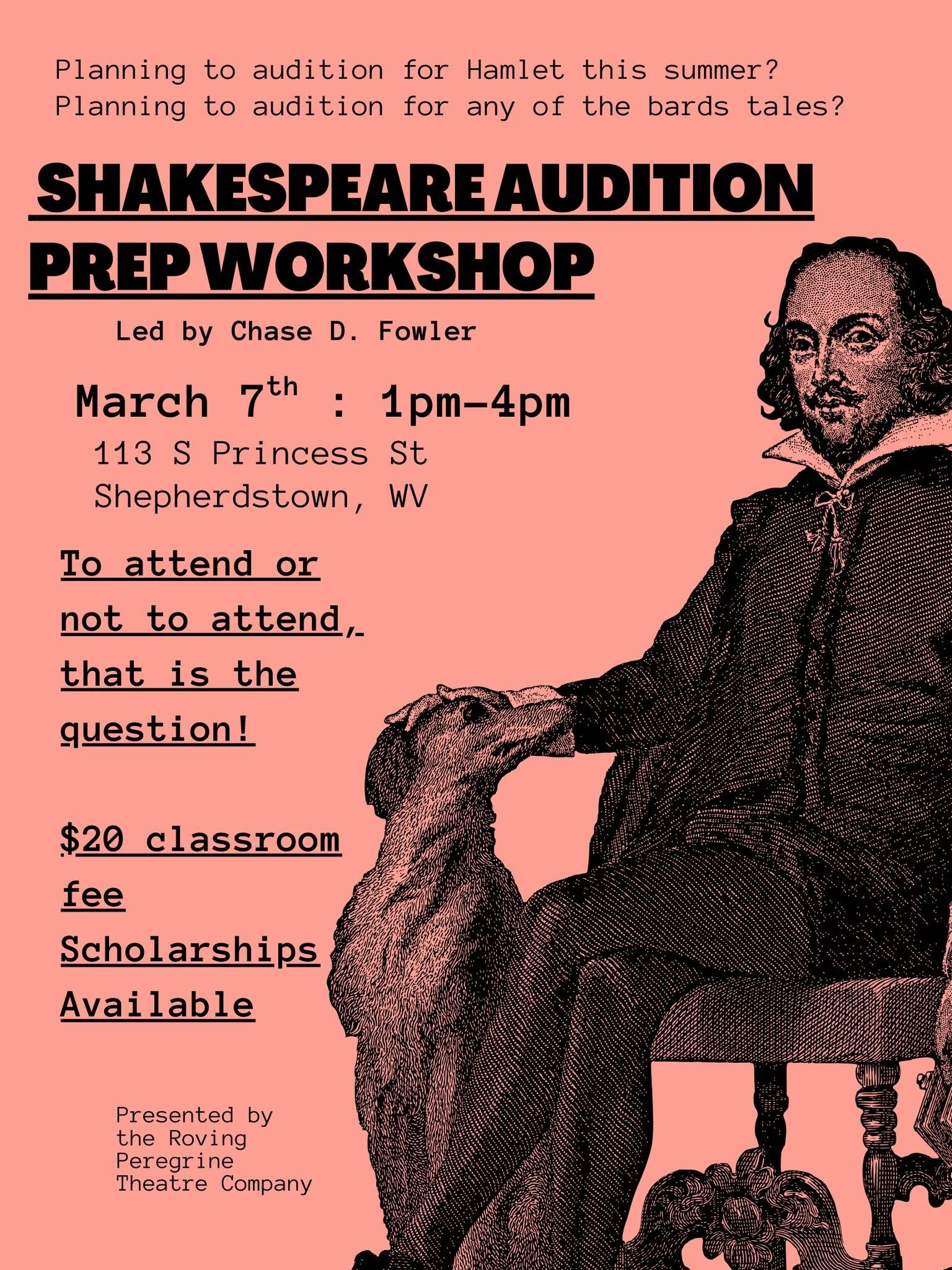 The Roving Peregrine Theatre Company is an ever expanding collective of artists in WV seeking to foster the developments of fellow artists by eliminating common barriers to inclusivity and equity. We host theatrical and artistic productions throughout the year that range from spins on classics to new work, as well as various activities and workshops. We seek to train, challenge, and support the current, and next generation of theatre artists. Through our mission we also seek to join with other community theatres for mutual assistance and support, and we seek to use the power of theatre to reach our common goals within each community. Through this work we will bring new experiences and entertainment to enrich our surrounding communities.